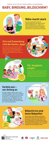 Die ersten Lebensjahre sind voller Entwicklungsfeuerwerke. Babys brauchen dafür keine Bildschirme – sondern uns: Stimme, Blickkontakt, Berührung, gemeinsames Spielen und Trösten. So entstehen Sicherheit und ein gutes Gefühl füreinander.
